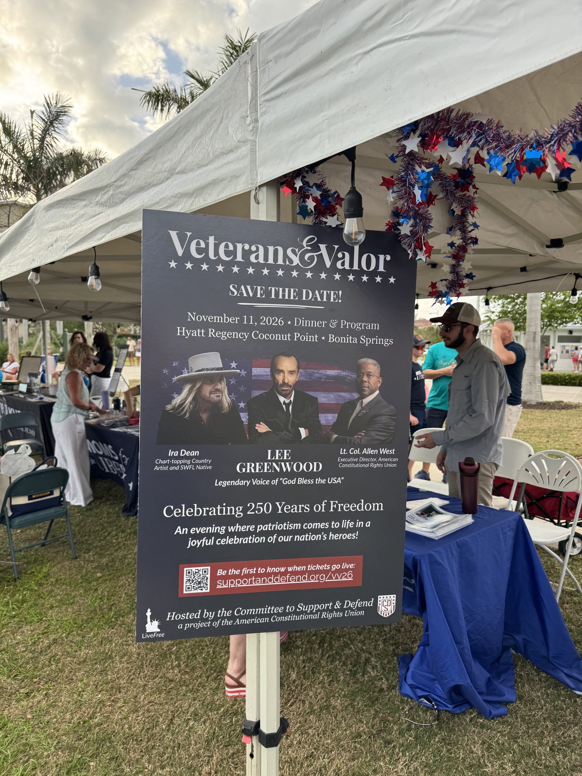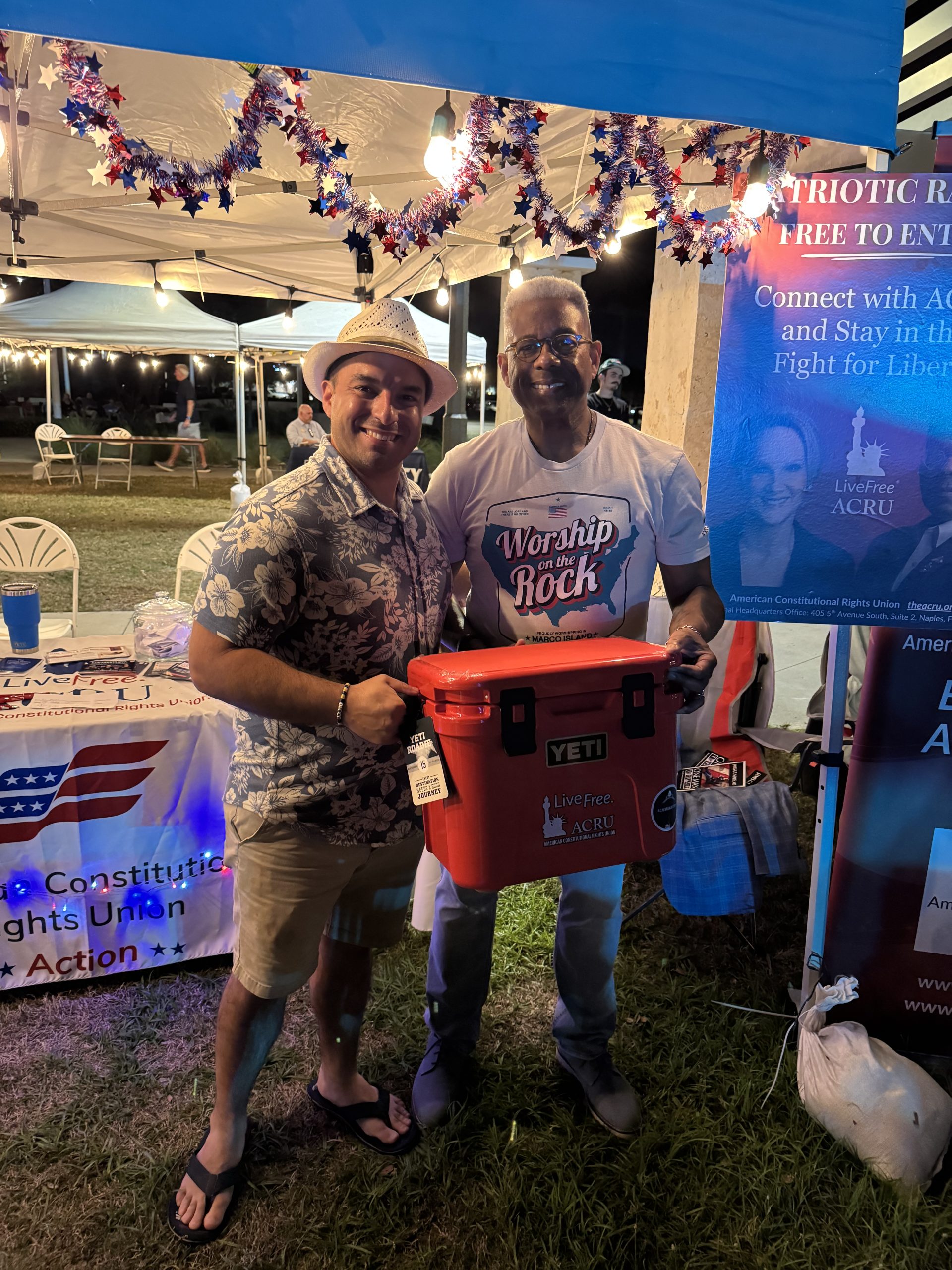ACRU was pleased to sponsor Worship on the Rock Marco Island this past weekend, where over 3500 gathered to celebrate our great nation and our Sovereign God. Allen was honored to receive the Charlie Kirk Hero for my Faith Award and gave a keynote speech on the importance of our Judeo-Christian faith heritage as a nation. There is no other nation in the world that was created on the premise that the individual is sovereign because their rights come from a sovereign God. It was wonderful meeting with so many veterans and community members and our SWFL ACRU team during this incredible event.